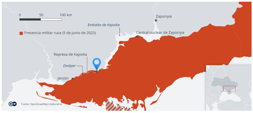 Ya en el primer día de la invasión rusa en Ucrania, el 24 de febrero de 2022, la planta hidroeléctrica de Kajovka fue conquistada. El servicio de inteligencia ucraniano asegura que, en octubre de 2022, el Ejército ruso minó por completo la represa.