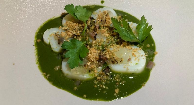Calamares con guanciale.