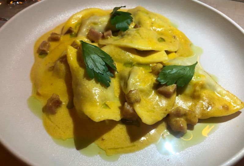 Mezzalune con salsa de ají amarillo.