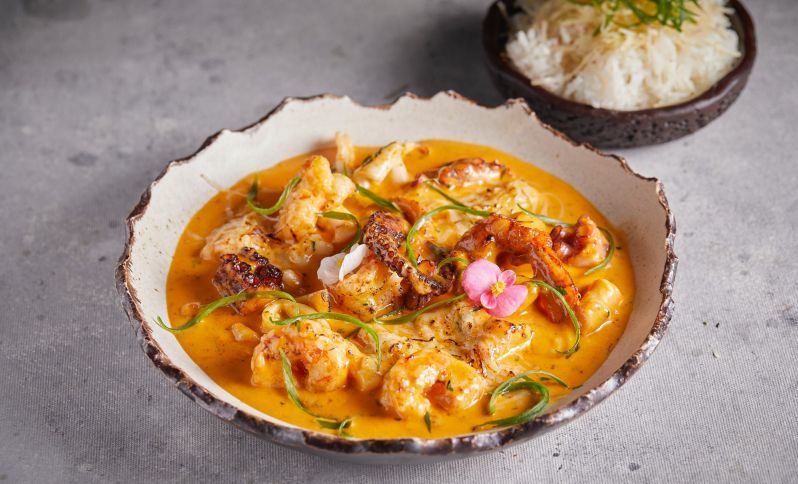 Imposible resistirse a los Mariscos Batayaki (al fuego), salteados con manteca oriental más jugo de lima, tan llamativos visualmente como de sabor intenso.