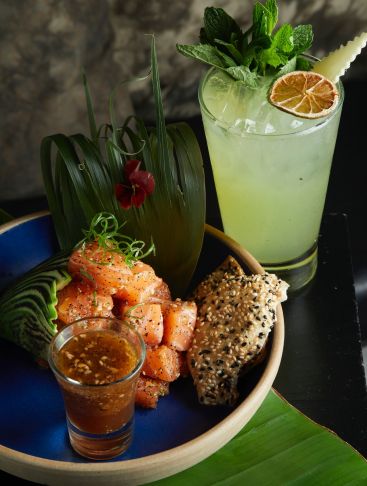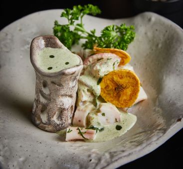 El ceviche Wasabi de pesca del día, pulpo y vieiras, con leche de tigre cremosa al wasabi, lleva además chips de plátano, cilantro y furikake de la casa. Y ni hablar del tiradito nikkei de salmón rosado con salsa cítrica a base de sésamo, abanico de palta a las brasas y crocante de sésamo.