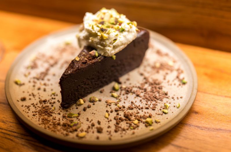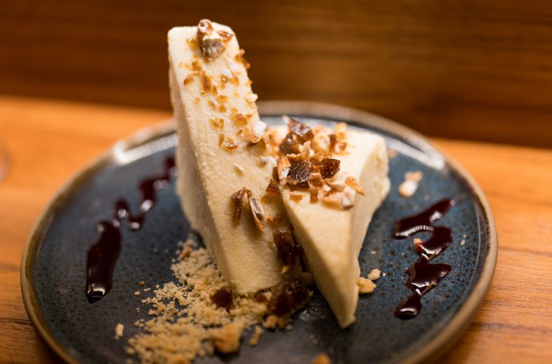 Para el final, la carta exhibe cinco postres, destacándose la torta húmeda de chocolate con crema de wasabi y tierra de cacao; así como el semifreddo helado de jengibre y limón.